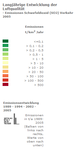 - Entwicklung Luftqualität - Emissionswerte SO2 1989 bis 2005 (Umweltatlas) Dienst