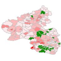 Thematische Karten zur Landtagswahl am 13. März 2016 in Rheinland-Pfalz. Landesstimmenergebnisse von SPD, CDU, GRÜNEN, FDP, DIE LINKE, AfD werden auf Kreis-, Verbandsgemeinde- und Gemeindeebene mit Landesstimmenanteilen in % angezeigt sowie die Gewinne und Verluste zur Landtagswahl 2011 in Prozentpunkten. Die Ergebnisse der anderen Parteien sind unter Sonstige zusammengefasst.:SPD: Landesstimmen bei der Landtagswahl 2016, Gewinne und Verluste gegenüber Landtagswahl 2011 in %-Punkten, Gemeindeebene