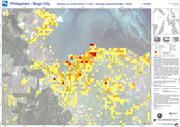 Am Freitag dem 8. November traf der Taifun Haiyan (Kategorie 5 auf der Saffir-Simpson-Skala) um 4:40 Uhr lokaler Zeit auf die Philippinen. Mit Windgeschwindigkeiten von mehr als 300 km/h bewegte sich der Taifun über die Inseln Samar und Leyte hinweg in west-nordwestlicher Richtung und löste dabei zahlreiche Sturmfluten aus, die großflächige Zerstörungen hervorriefen.Die Karte zeigt die Situation in Bogo City im Norden der Insel Cebu. Basierend auf einer visuellen Interpretation einer WorldView-1 Nachher-Satellitenszene vom 11.11.2013 (Aufnahmezeit: 02:14 Uhr Uhr) wurde eine detaillierte Schadensabschätzung vorgenommen. Die Anzahl der beschädigten Gebäude wurde jeweils für eine 100m-Zelle zusammengefasst.Bitte beachten Sie, dass einige Gebiete aufgrund von Wolkenbedeckung nicht ausgewertet werden konnten. Wegen eingeschränkter Datenlage sind die Einzelgebäude und Straßen nicht in jedem Fall vollständig dargestellt.