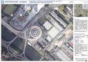 Zum 11. Landesfeuerwehrtag Baden-Württemberg in Stuttgart zeigt das ZKI des DLR im Auftrag des Bundesamtes für Bevölkerungsschutz und Katastrophenhilfe (BBK), Möglichkeiten der Nutzung unterschiedlicher Sensoren zur Lagebildunterstützung. Dabei werden am 28. und 29. Juni im Rahmen eines Sensorverbundsystems sowohl terrestrische, als auch fernerkundungsgestützte Daten und Informationen in Nahe-Echtzeit erhoben und visualisiert. Ziel dieser Studie ist die Evaluierung, inwiefern z.B. bei Großereignissen durch die gemeinsame Verwendung unterschiedlicher Sensorsysteme und Aufnahmeplattformen die Lagebilderstellung sowie die Entscheidungs-unterstützung für Krisenstäbe und Einsatzkräfte unterstützt werden kann. Die Luftbilddaten wurden in einer Höhe von ca. 1700 Meter über Grund (Flugstreifen 1-2) aufgenommen. Dieses Produkt wurde innerhalb des Rahmenvertrags “ZKI-DE” zwischen dem Bundesministerium des Innern (BMI) und dem Deutschen Zentrum für Luft- und Raumfahrt (DLR) erstellt. Aktualisierte Produktversionen sind unter http://www.zki.dlr.de abrufbar.